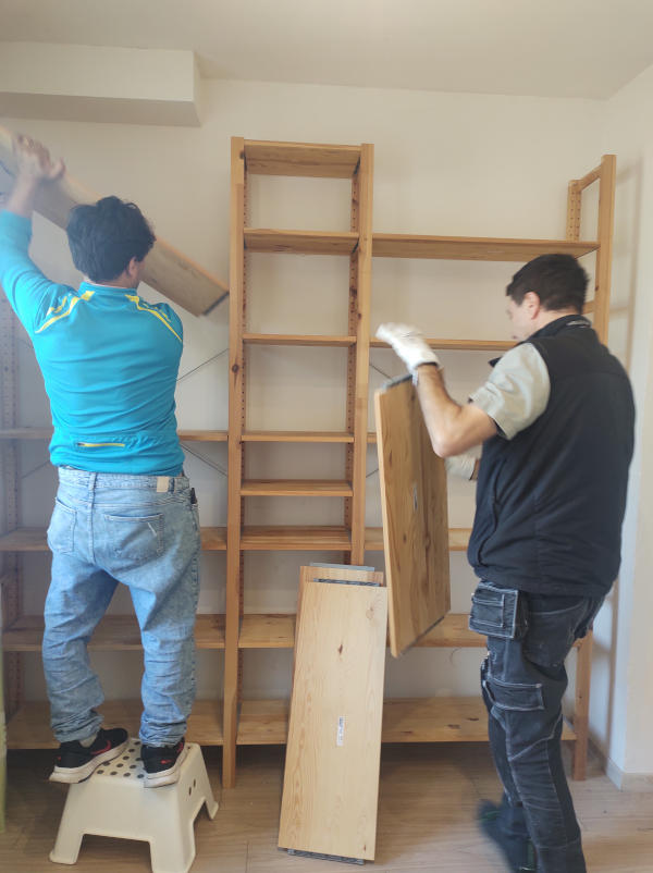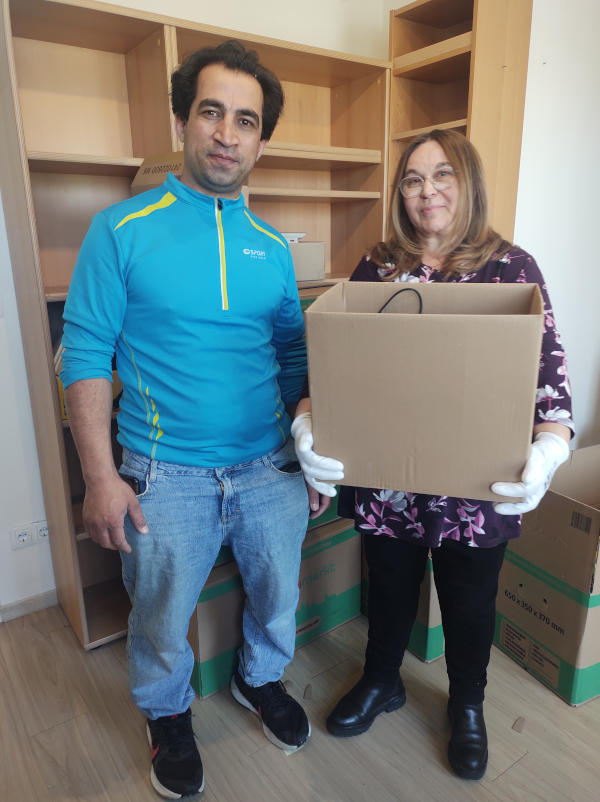 Die IKVP-Vorsitzende Marita Emrich und die Umzugshelfer, Mohammad Shafiq Azimi und Waldemar Emrich beim Räumen der IKVP-Geschäftsstelle im alten Rot-Kreuz-Haus.