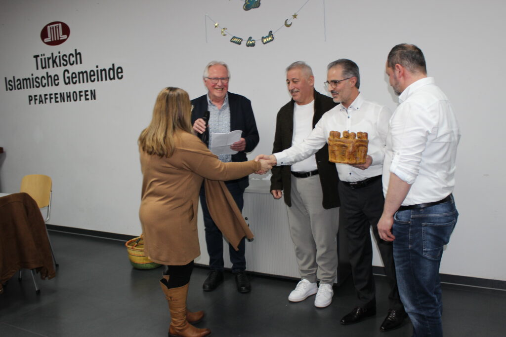 Marita Emrich, die Vorsitzende des Internationalen Kulturvereins (IKVP), betonte, dass mit dem christlich-islamischen Dialog bereits seit über 20 Jahren „Brücken zwischen den Kulturen und Religionen“ gebaut würden. Sepp Steinbüchler, ehemaliger Pastoralreferent der katholischen Stadtpfarrei und Leiter der AG Tisch der Religionen und Kulturen im IKVP, bedankte sich bei den bisherigen Ditib-Vorsitzenden: bei Ali Tekin für seine Pionierarbeit, denn er hatte als Erster die politisch Verantwortlichen der Stadt zum Fastenbrechen eingeladen; bei Erol Demirci, der die Arbeit zwei Jahre lang fortgesetzt hatte, und bei Recep Bal, dessen „Ära“ von 2006 bis 2025 dauerte.
